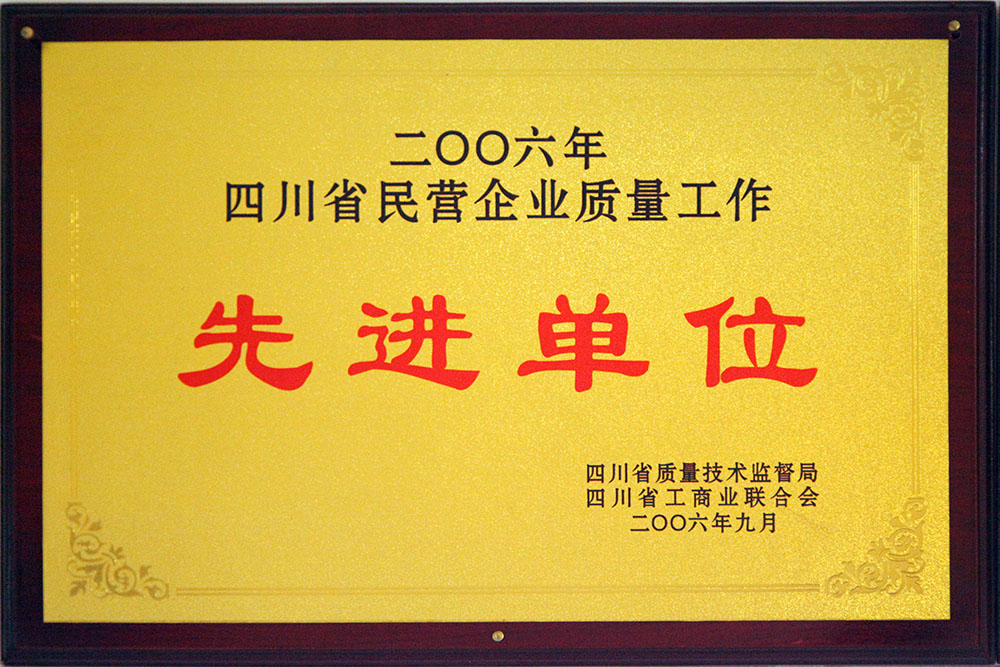 四川省民營企業質量工作先進單位
